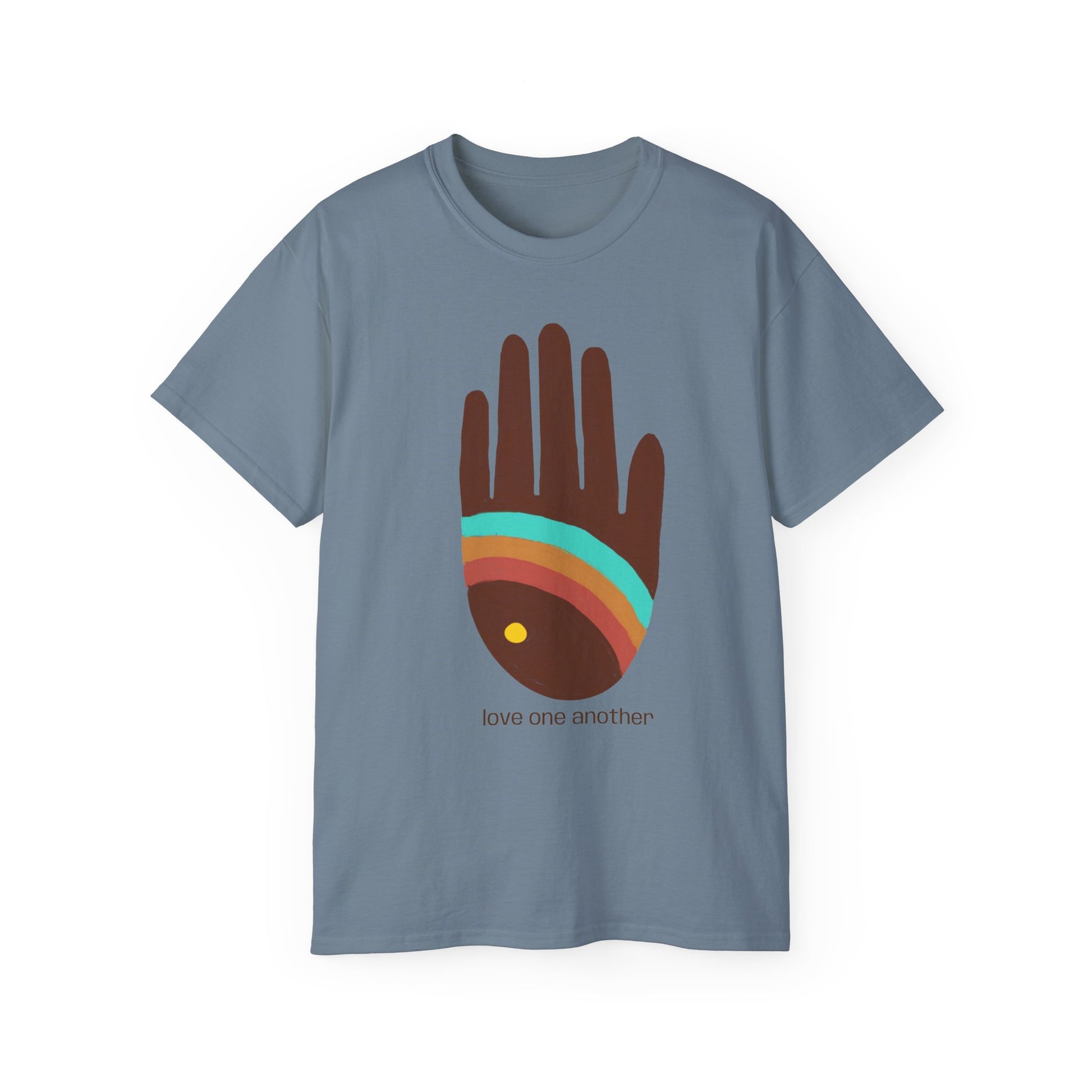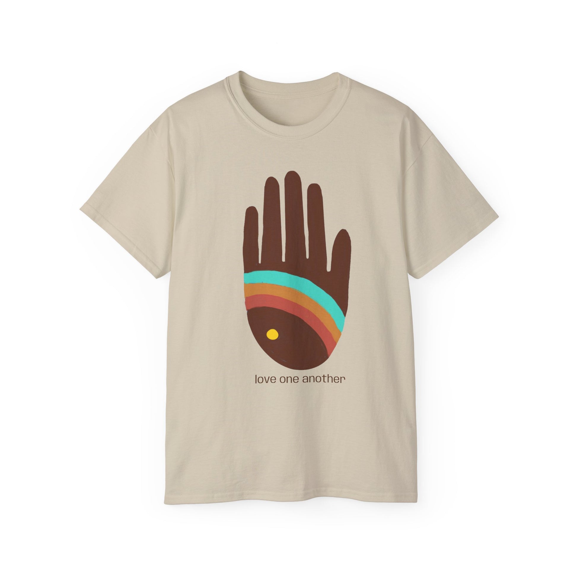 The Love One Another T-shirt from our Rainbow Hands collection speaks with a message of love and unity encapsulated in its design.